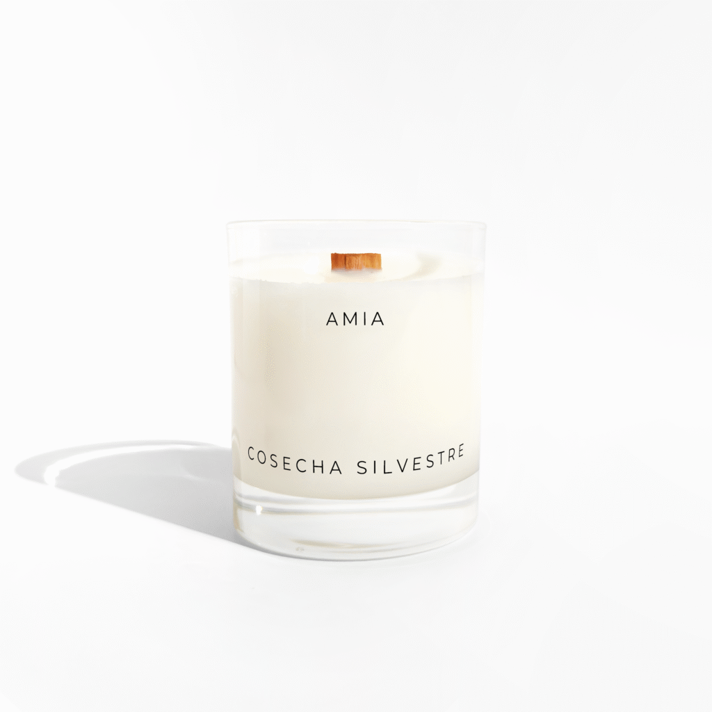 Velas creadas a mano para acompañar. Fragancias que envuelven el espacio sin imponerse. Encender una vela AMIA es crear ambiente.